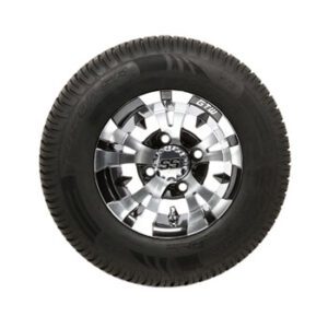 A set of (4) 10-inch Vampire black/machined golf cart wheels on 205/65-10 (20-inch) tires