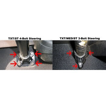 Fits E-Z-GO 2001.5-Up TXT Electric models with 4-bolt steering (Please refer to image on left)