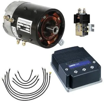 This system includes an AMD speed motor rated at 7HP, a Curtis 500 amp heavy duty controller, a beast of a solenoid with bracket and diode. You also get a regen to IQ conversion harness so you can step into the latest and greatest drive system. All cables get upgraded to four-gauge, and a complete set of instructions, all you need to do is call CartPros.