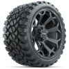 Set of (4) 15-inch GTW Bravo Matte Gray golf cart wheels mounted on 23-inch GTW Nomad All-Terrain tires