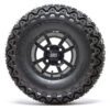 A set of (4) 10-inch Tempest black/machined lifted golf cart wheels on 20-inch A/T tires